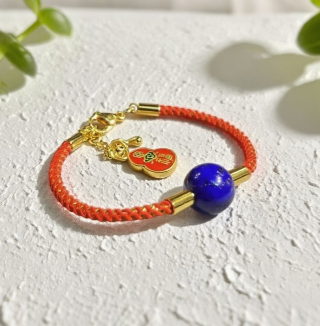 A handcrafted bracelet combining the power of red string with the clarity and depth of lapis lazuli.